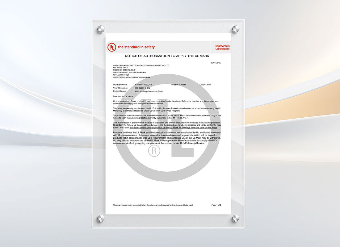 The company regards quality as the life of the enterprise, and has passed ISO9001, ISO14001 quality management system, RoHs environmental management system, EU CE, etc., and has dozens of patents, which provides a systematic guarantee for the stability and improvement of product quality. And relying on continuous development, innovation and good service, it has a solid market position in the world; in 2008, "Kweight" was successfully registered in the EU, and Kweight power products with "EU standards, world brands" are available throughout the EU It is protected and can be freely entered and exited among EU member states; in 2010, it was awarded the honorary certificate of "Best Power Supply Supplier for the Singapore Youth Olympics". At the same time, more than 75% of large and medium-sized products are currently exported to Europe, North America, Australia, Southeast Asia, the Middle East and other countries and regions.