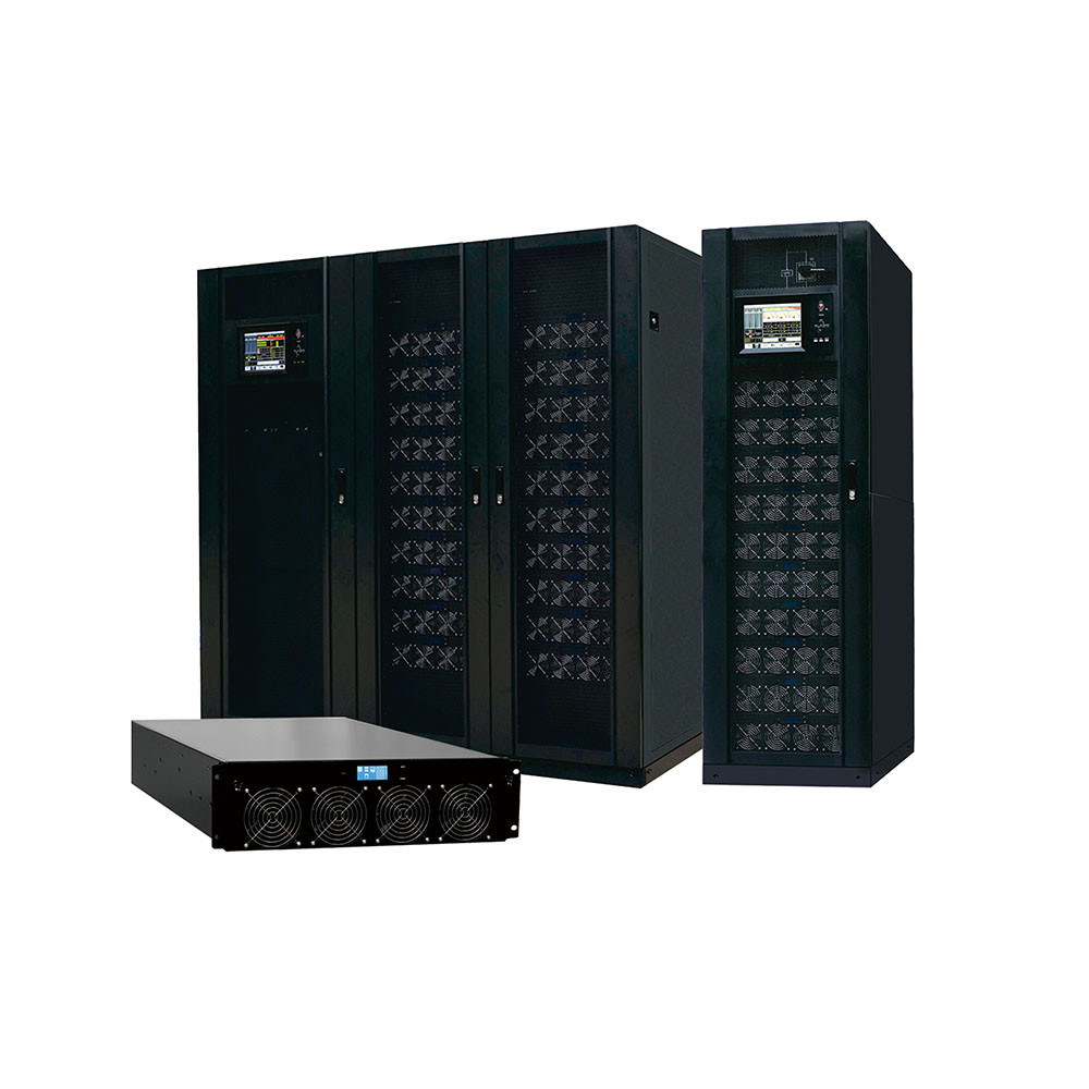 Rack mounted (1-20kVA) and high-frequency online (1-800kVA) adopt a dual conversion pure online architecture, which is the most effective architecture design to solve all power supply problems. It can provide good solutions for power outages, high or low mains voltage, voltage drops or oscillations, high voltage pulses, voltage fluctuations, surge voltage, harmonic distortion, clutter interference, frequency fluctuations and other situations in the power grid, providing safe and reliable power supply guarantee for user loads.